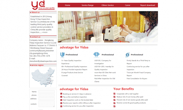 ,此項目為2019年Hongkong Yidaa Inspection Service Co.;Ltd 新版官方網(wǎng)站。