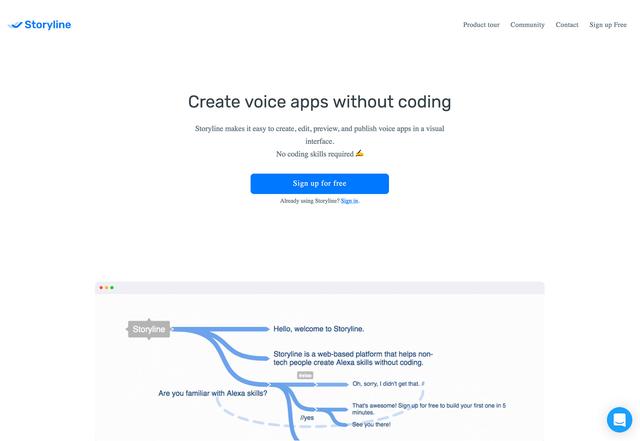 無需代碼知識,你就可以在 Storyline 上創(chuàng)建語音應(yīng)用,就像在亞馬遜的 Alexa 上那樣。這款可視化的工具能夠幫你完成整個語音應(yīng)用的設(shè)計。