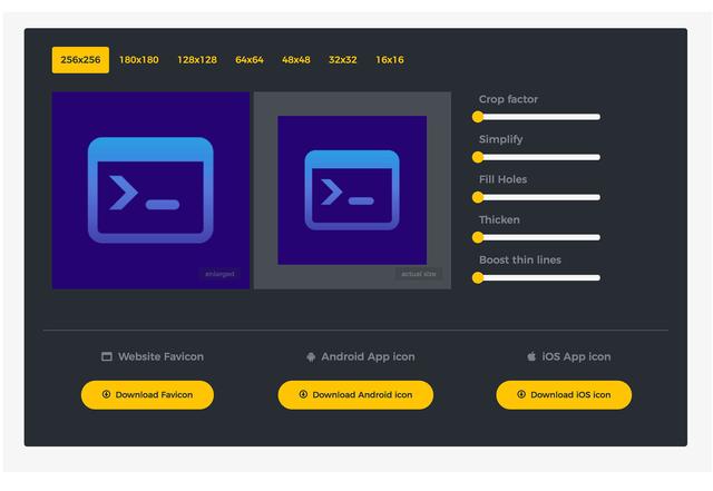 Logo Crunch 是一款LOGO制作工具,可以生成多個分辨率的LOGO,其中低分辨的版本能夠非常清晰。用來制作Favicon 效果會很不錯。