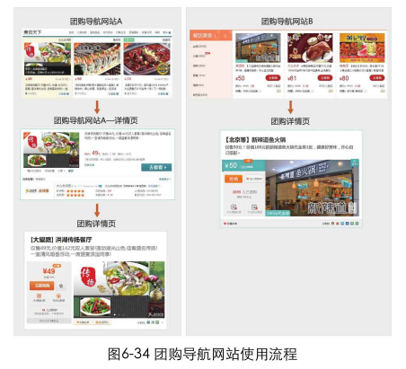 我們?cè)趫F(tuán)購(gòu)時(shí)經(jīng)常會(huì)用到“團(tuán)購(gòu)導(dǎo)航網(wǎng)站”。這類網(wǎng)站聚合了不同團(tuán)購(gòu)網(wǎng)站的商品。在有些團(tuán)購(gòu)導(dǎo)航網(wǎng)站的列表頁(yè)點(diǎn)擊某一商品時(shí),首先會(huì)跳轉(zhuǎn)到該導(dǎo)航網(wǎng)站的詳情頁(yè)。里面提供了一些團(tuán)購(gòu)商品的簡(jiǎn)介,但是并沒(méi)有提供更多詳情。如果我要團(tuán)購(gòu)一份雙人晚餐,只知道商家和價(jià)格顯然是不夠的,我還需要知道具體有哪些配菜、餐館的地址、有無(wú)消費(fèi)限制、是否需要預(yù)約等信息。這些信息都會(huì)影響到我是否要購(gòu)買。于是我還要點(diǎn)擊導(dǎo)航網(wǎng)站詳情頁(yè)的“去看看”按鈕跳轉(zhuǎn)到我要購(gòu)買產(chǎn)品的團(tuán)購(gòu)詳情頁(yè)。而有些團(tuán)購(gòu)導(dǎo)航網(wǎng)站,當(dāng)我在列表頁(yè)點(diǎn)擊某一商品后,會(huì)直接跳轉(zhuǎn)到我最后需要購(gòu)買商品的那個(gè)頁(yè)面,省去了中間多余的步驟。