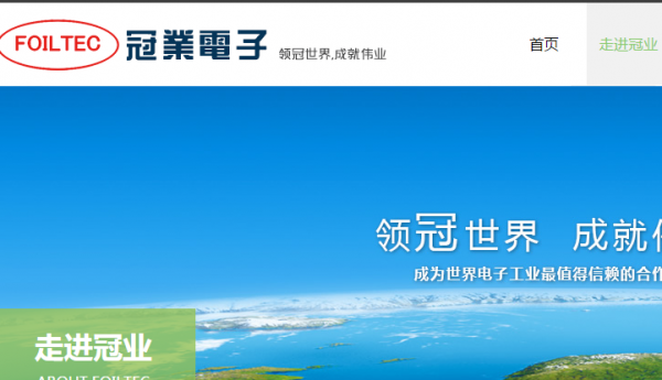 冠業(yè)電子于1996年在廣東省博羅成立,是專(zhuān)業(yè)生產(chǎn)鋁電解電容器用鋁箔的高新技術(shù)企業(yè),一直專(zhuān)注于鋁電解電容器用鋁箔,超級(jí)電容器用鋁箔,動(dòng)力電池用鋁箔的研發(fā)、生產(chǎn)及銷(xiāo)售,是目前國(guó)內(nèi)規(guī)模較大的負(fù)極箔生產(chǎn)企業(yè)之一。公司成立以來(lái)一直專(zhuān)注于鋁電解電容器用鋁箔,超級(jí)電容器用鋁箔,動(dòng)力電池用鋁箔的研發(fā)、生產(chǎn)及銷(xiāo)售,是目前國(guó)內(nèi)規(guī)模較大的兩家負(fù)極箔生產(chǎn)企業(yè)之一。占全球市場(chǎng)份額的35% 。通過(guò)十多年的發(fā)展,公司已成為國(guó)內(nèi)鋁電解電容器電極箔行業(yè)的領(lǐng)軍企業(yè)之一,公司的“FOILTEC”品牌已經(jīng)深得國(guó)內(nèi)外同行及下游企業(yè)的好評(píng),并成為日本NICHICON、 HITACHI 、韓國(guó)三和、美國(guó)KEMET,東莞冠坤、江海股份,臺(tái)灣立隆,臺(tái)灣臺(tái)容,臺(tái)灣金山,珠海格力,常州華威,佛山三水日明等國(guó)內(nèi)外知名鋁電解電容器生產(chǎn)企業(yè)的優(yōu)秀供應(yīng)商。2013年開(kāi)發(fā)的超級(jí)電容器用鋁箔是國(guó)內(nèi)第一家,產(chǎn)品質(zhì)量達(dá)到日本JCC同等水平,得到下游企業(yè)的好評(píng),并成為北京集星科技,寧波南車(chē)新能源,東莞斯巴復(fù)等超級(jí)電容器優(yōu)秀供應(yīng)商。
