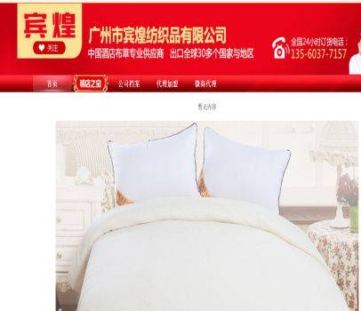 我司在與廣州市賓煌紡織品有限公司合作中;對(duì)該公司所經(jīng)營(yíng)的床上用品這個(gè)行業(yè)的網(wǎng)站建設(shè)項(xiàng)目積累著豐富經(jīng)驗(yàn);同時(shí)在該行業(yè)的網(wǎng)站建設(shè)、網(wǎng)絡(luò)營(yíng)銷(xiāo)等多元化的床上用品領(lǐng)域中也有很多成功的案例;但愿通過(guò)我們的合作,能夠幫助到合作伙伴們?cè)诰W(wǎng)絡(luò)營(yíng)銷(xiāo)路上平安!順利!發(fā)展!