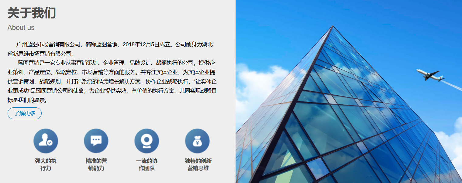 藍圖營銷是一家專業(yè)從事營銷策劃、企業(yè)管理、品牌設計、戰(zhàn)略執(zhí)行的公司,提供企業(yè)策劃、產(chǎn)品定位、戰(zhàn)略定位、市場營銷等方面的服務。并專注實體企業(yè),為實體企業(yè)提供營銷策劃、戰(zhàn)略規(guī)劃,并打造系統(tǒng)的持續(xù)增長解決方案。協(xié)作企業(yè)戰(zhàn)略執(zhí)行,“讓實體企業(yè)更成功”是藍圖營銷公司的使命;為企業(yè)提供實效、有價值的執(zhí)行方案、共同實現(xiàn)戰(zhàn)略目標是我們的愿景。