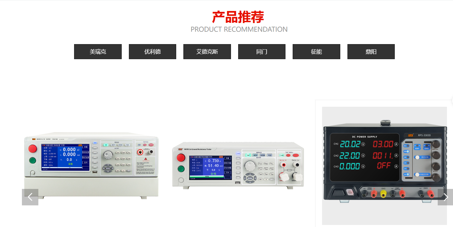 公司長期代理美瑞克(rek)、優(yōu)利德(UNI-T)、征能(FUZRR)、同門(eTOMMENS)等知名品牌的產(chǎn)品,產(chǎn)品涵蓋安規(guī)測試儀、醫(yī)用安規(guī)、電子負(fù)載、直流電源、電子測量、環(huán)境檢測、光學(xué)儀器等多個領(lǐng)域。