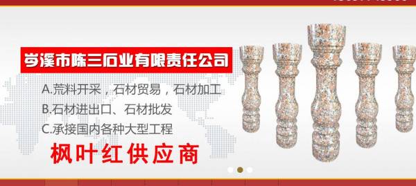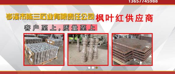 公司專業(yè)生產(chǎn)及開采廣西楓葉紅、廣西三堡紅、廣西浪花白、廣西海棠紅、廣西粉紅麻、廣西芝麻黑等優(yōu)質(zhì)花崗巖,擁有多名優(yōu)秀專業(yè)技術(shù)人員,是專業(yè)的楓葉紅供應(yīng)商。主營:荒料,高檔別墅,星級酒店,歐式工程石材,外墻干擋板,光面,荔枝面,火燒面。