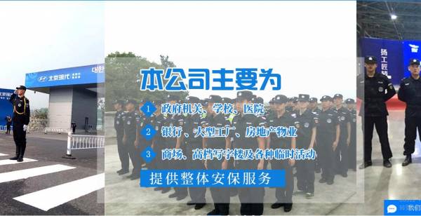 重慶振*保安服務(wù)有限公司是經(jīng)重慶市公安局、重慶市 工商行政管理局正式批準(zhǔn)的具有合法資質(zhì)的保安服務(wù)公司。本公司全稱:重慶振華保安服務(wù)有限公司,營(yíng)業(yè)執(zhí)照號(hào)碼(統(tǒng)-社會(huì)信用代碼) : 91500103MA5U4JUX8E,三證合一 后的組織機(jī)構(gòu)代碼、 稅務(wù)登記證代碼與營(yíng)業(yè)執(zhí)照號(hào)碼一致。本公司注冊(cè)資金:五任萬(wàn)元整。重慶市公安局批準(zhǔn)設(shè)立日期: 2016年1月14日。重慶市工商行政管理局渝中區(qū)分局發(fā)證時(shí)間: 2016年1月27日。保安服務(wù)許可證號(hào)碼:渝公保服20160003號(hào)。本公司2016年3月加入重慶市保安協(xié)會(huì),本公司是重慶市保安協(xié)會(huì)第一屆理事 會(huì)會(huì)員單位。