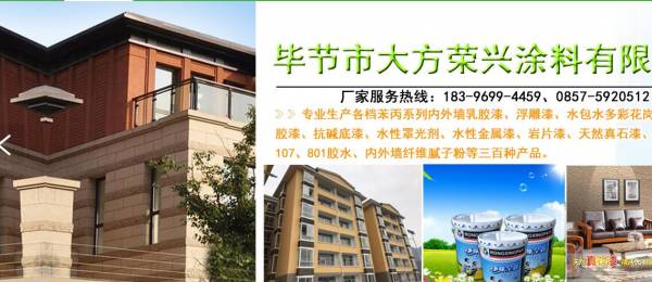 畢節(jié)市*興涂料有限公司位于貴州省畢節(jié)市奢香故里,企業(yè)創(chuàng)始團隊從事該行業(yè)三十年,有實力雄厚的施工隊伍,技術(shù)力量強,是集科研、開發(fā)、制造為一體的現(xiàn)代化綜合型企業(yè)。畢節(jié)市榮興涂料有限公司專業(yè)生產(chǎn)各檔苯丙系列內(nèi)外墻乳膠漆、浮雕漆、炮水多彩花崗巖、彈性乳膠漆、抗堿底漆、水性罩光劑、水性金屬漆、漆、天然真石漆、防水涂料、107. 801膠水、內(nèi)外墻纖維膩子粉等三百種產(chǎn)品,價格親民,產(chǎn)品齊全,具有耐磨、抗老化、防水、抗污,附著力極強等功能,綠色環(huán)保,節(jié)省涂料。