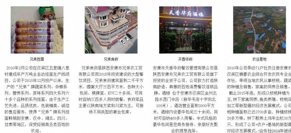 陜西安康市*弟農(nóng)工貿(mào)有限公司于2010年4月投資成立,注冊資金2000萬元,公司下屬實體企業(yè)涉及食品加工、農(nóng)副產(chǎn)品加工、餐飲、建筑材料、商貿(mào)流通、農(nóng)業(yè)綜合開發(fā)等領(lǐng)域,包括年產(chǎn)萬噸全自動掛面生產(chǎn)項目、千畝新型核桃種植項目、年出欄30萬只林下散養(yǎng)雞項目、年加工5000萬塊頁巖磚項目、年加工5萬噸鋼結(jié)構(gòu)生產(chǎn)線項目等,公司2014年被安康市政府評為市級龍頭企業(yè)。截止2016年公司總資產(chǎn)6700萬元,擁有員工480人(其中安排貧困戶和移民搬遷戶23人)。 2010年2月公司在漢濱區(qū)五里鎮(zhèn)八里村建成年產(chǎn)萬噸全自動掛面生產(chǎn)線項目。項目占地15畝,項目總投資2800萬元,全年生產(chǎn)量達到1.5萬噸,年實現(xiàn)產(chǎn)值6000萬元。項目于2010年12月投產(chǎn)以來,生產(chǎn)的“兄弟”牌蔬菜系列、雜糧系列、營養(yǎng)系列、原味系列四大系列六十多個品種的系列掛面。由于生產(chǎn)工藝先進、品質(zhì)優(yōu)良、包裝精美、誠信的售后服務(wù),使得“兄弟”牌系列掛面暢銷到安康、漢中、湖北、四川、甘肅等地區(qū),深受經(jīng)銷商及老百姓的歡迎。