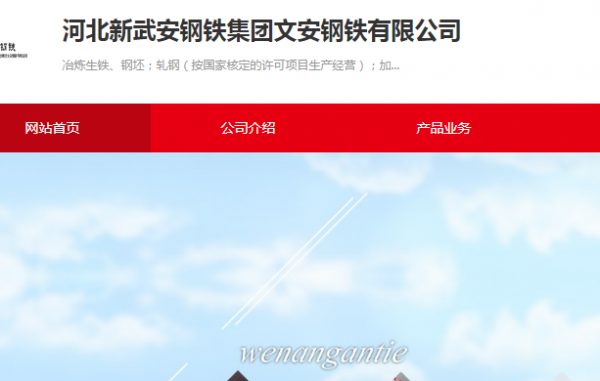 河北*武安鋼鐵集團(tuán)文安鋼鐵有限公司選用我司企業(yè)寵物用品網(wǎng)站案例,其網(wǎng)站建設(shè)的特點(diǎn)是冶煉生鐵、鋼坯;軋鋼。用很合適的展示方式、展示效果、站點(diǎn)框架,把客戶及其用戶很關(guān)心的問題突出表現(xiàn);并以簡(jiǎn)潔明朗的設(shè)計(jì)風(fēng)格,清晰展現(xiàn)公司水平實(shí)力,確保一秒抓住目標(biāo)用戶眼球,給用戶留下良好的第一印象。河北*武安鋼鐵集團(tuán)文安鋼鐵有限公司成立于1993年,是經(jīng)武安市場(chǎng)監(jiān)督管理局審核的有資質(zhì)的公司,其統(tǒng)一社會(huì)信用代碼:9113048**57519234B。公司地址:河北省邯鄲市武安市南環(huán)路 。