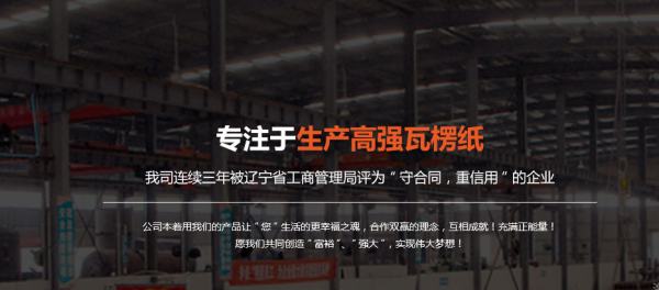 遼陽嘉*紙業(yè)有限公司始建于2006年7月22日,2007年7月22日投產(chǎn)。多年來積累了豐富的經(jīng)驗,產(chǎn)品適用于高、中、低速紙箱聯(lián)合生產(chǎn)線,年產(chǎn)高、中強瓦楞芯(原) 紙2萬噸以上,質(zhì)量達到國家標準。公司位于沈大高速83公里處路西側,南臨鞍山市出口,北臨遼陽縣出口,地理位置優(yōu)越,嘉豐紙業(yè)歡迎您!