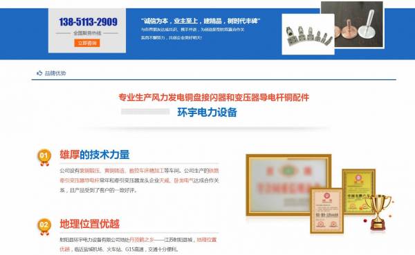 射陽(yáng)縣*宇電力設(shè)備有限公司選用我司企業(yè)機(jī)械設(shè)備行業(yè)的網(wǎng)站優(yōu)化產(chǎn)品,其SEO關(guān)鍵詞有 射陽(yáng)縣*宇電力設(shè)備有限公司。其特點(diǎn)是用很合適的展示方式、展示效果、站點(diǎn)框架,把客戶及其用戶很關(guān)心的問(wèn)題突出表現(xiàn);并以簡(jiǎn)潔明朗的設(shè)計(jì)風(fēng)格,清晰展現(xiàn)公司水平實(shí)力,確保一秒抓住目標(biāo)用戶眼球,給用戶留下良好的第一印象。射陽(yáng)縣*宇電力設(shè)備有限公司成立于2006年,是經(jīng)射陽(yáng)市市場(chǎng)監(jiān)督管理局審核的有資質(zhì)的公司,其統(tǒng)一社會(huì)信用代碼:9132092**95357950H。公司地址:鹽城市射陽(yáng)縣合德鎮(zhèn)運(yùn)棉村二組68號(hào) 。