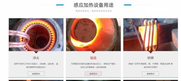 目前已研制一系列高頻、中頻、超音頻、超高頻感應(yīng)加熱電源。以及高頻淬火機床,中頻熔煉,中頻鍛造爐,超音頻退炎機,超音頻鍛造爐,釬焊機,塑焊機,熱彎機等多種專業(yè)設(shè)備,廣泛應(yīng)用在金屬加工、五金塑料、汽車、摩托車、家電、水暖、潔具、制冷、通信、醫(yī)療器材、兵器工業(yè)等需熱源設(shè)備的行業(yè)之退火、淬火、焊接、透熱成型、熱配合等工藝。