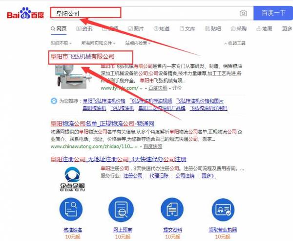 阜陽市*弘機械有限公司與我司做快速排名項目