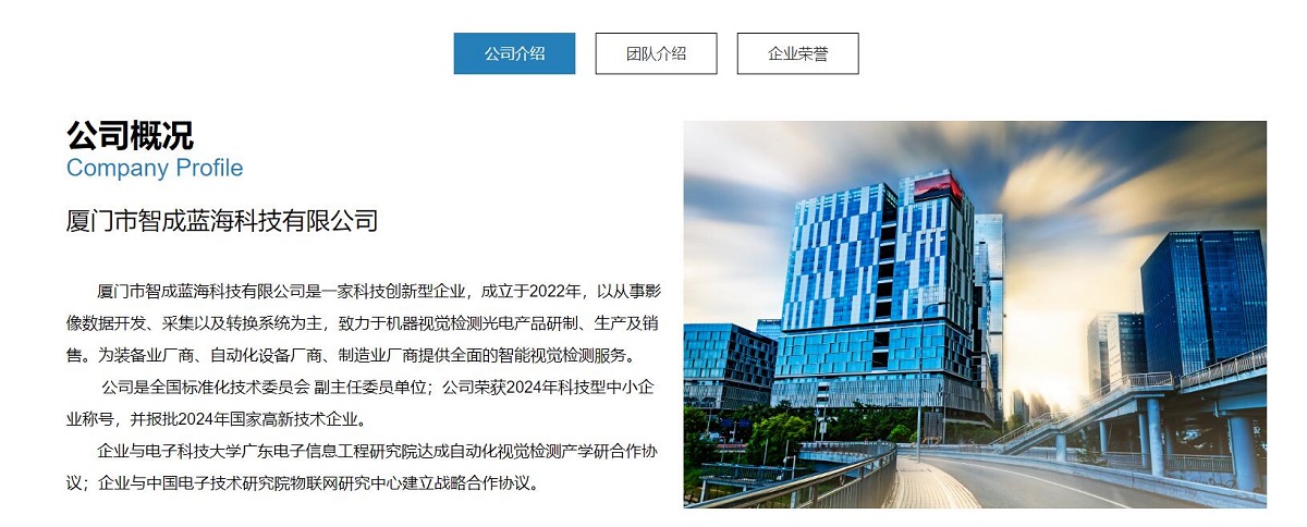 廈門市智成藍??萍加邢薰臼且患铱萍紕?chuàng)新型企業(yè),成立于2022年,以從事影像數(shù)據(jù)網(wǎng)站開發(fā)、采集以及轉(zhuǎn)換系統(tǒng)為主,致力于機器視覺檢測光電產(chǎn)品研制、生產(chǎn)及銷售。為裝備業(yè)廠商、自動化設(shè)備廠商、制造業(yè)廠商提供全面的智能視覺檢測服務(wù)。
