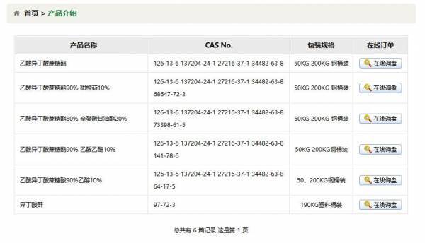 江西天*香料有限公司選用我司企業(yè)寵物用品網(wǎng)站案例,其網(wǎng)站建設(shè)的特點(diǎn)是異丁酸酐,乙酸異丁酸蔗糖酯,辛葵酸甘油酯,二乙酸六異丁酸蔗糖酯,SAIB,天奕香料。用很合適的展示方式、展示效果、站點(diǎn)框架,把客戶及其用戶很關(guān)心的問題突出表現(xiàn);并以簡(jiǎn)潔明朗的設(shè)計(jì)風(fēng)格,清晰展現(xiàn)公司水平實(shí)力,確保一秒抓住目標(biāo)用戶眼球,給用戶留下良好的第一印象。江西天*香料有限公司成立于2011年,是經(jīng)撫州市市場(chǎng)監(jiān)督管理局審核的有資質(zhì)的公司,其統(tǒng)一社會(huì)信用代碼:91361**7571185942G。公司地址:江西省撫州市金溪工業(yè)園C區(qū)檀湖路。