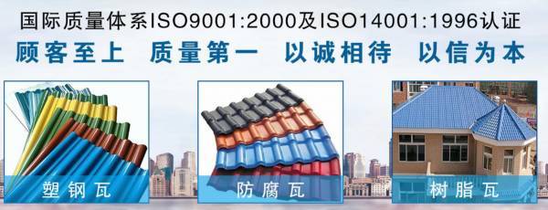 巨野巨*新型材料有限公司,地理位置優(yōu)越,交通便利。公司擁有完善的加工工藝,先進的管理模式,是一家集設(shè)計、開發(fā)、生產(chǎn)、銷售為一體企業(yè)。多年來我們一直致力于新產(chǎn)品的開發(fā)和技術(shù)改造,積累了豐富的經(jīng)驗 專業(yè)產(chǎn)品、專業(yè)的服務(wù)取得海內(nèi)外新老客戶的一致認可!本公司主要研發(fā)生產(chǎn)合成樹脂瓦、塑鋼瓦、防腐瓦、仿古瓦等產(chǎn)品的足跡已遍布全國各地,滿足了客戶的不同需求.合成樹脂瓦具有顏色持久、質(zhì)輕、自防水、堅韌、保溫隔熱、隔音、耐腐蝕、抗風(fēng)防震、抗冰雹、抗污、綠色環(huán)保、防火、絕緣、安裝方便等優(yōu)點,而且造型美觀立體感強,顏色具有中國元素,使得它被廣泛應(yīng)用于各類建筑屋面裝飾,尤其目前國內(nèi)大力推廣的“平改坡”工程;塑鋼瓦具有優(yōu)異的耐候性能和耐腐蝕性能,是冶金、化工、化肥、陶瓷燈腐蝕工作環(huán)境較好的建筑材料;仿古瓦有多種規(guī)格,被廣泛用于室內(nèi)屋檐裝飾、室外門頭、馬頭墻等,常用場所有餐館、太極館、茶館、酒店等。十多年以來,公司始終秉持以“為客戶創(chuàng)造價值”為目標,以市場為導(dǎo)向,以滿足、服務(wù)客戶為宗旨。嚴格的檢測手段,精工細作 ,為客戶提供滿意的產(chǎn)品 以及完善的售后服務(wù)!
