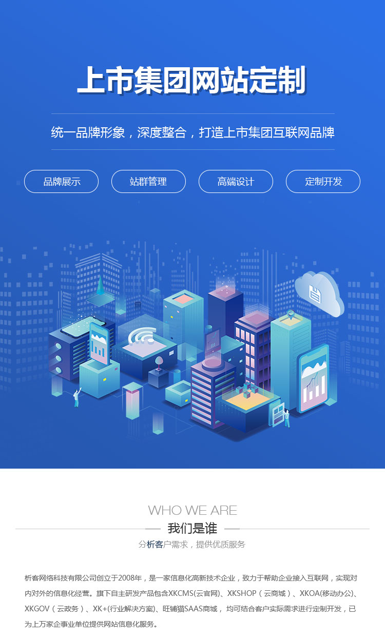 1. 品牌展示型:適合注重品牌形象、面向公眾與投資者的企業(yè),核心訴求是傳遞企業(yè)理念、展示實力與案例,打造專業(yè)、可信的品牌形象,無需復(fù)雜的交易功能,重點(diǎn)突出視覺設(shè)計與品牌傳遞;