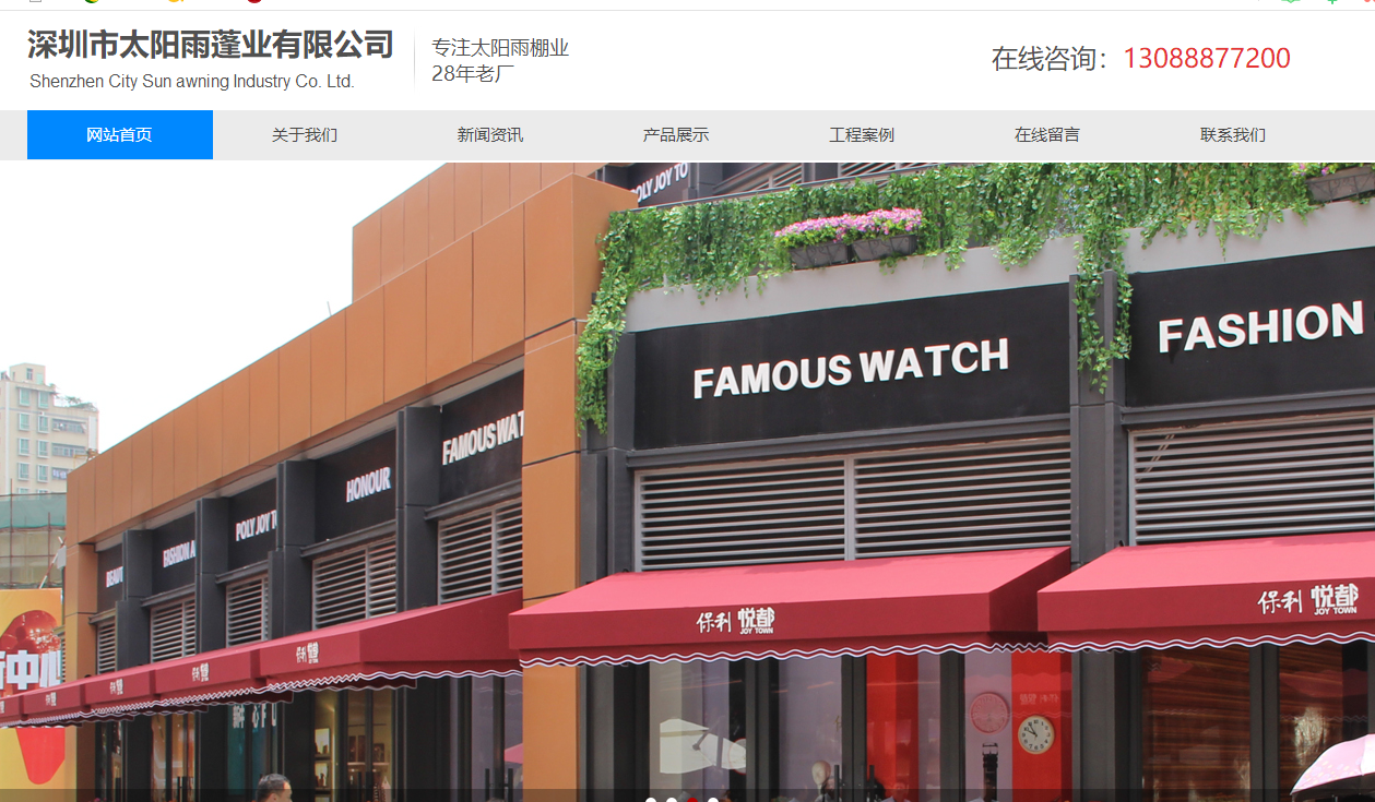 海洋網(wǎng)絡(luò)網(wǎng)站建設(shè)從2018年開始與深圳市太陽雨蓬業(yè)有限公司深度合作,幫助深圳市太陽雨蓬業(yè)有限公司設(shè)計(jì)網(wǎng)站及開發(fā)網(wǎng)站多次網(wǎng)站平臺(tái),此項(xiàng)目為2018年深圳市太陽雨蓬業(yè)有限公司新版官方網(wǎng)站。