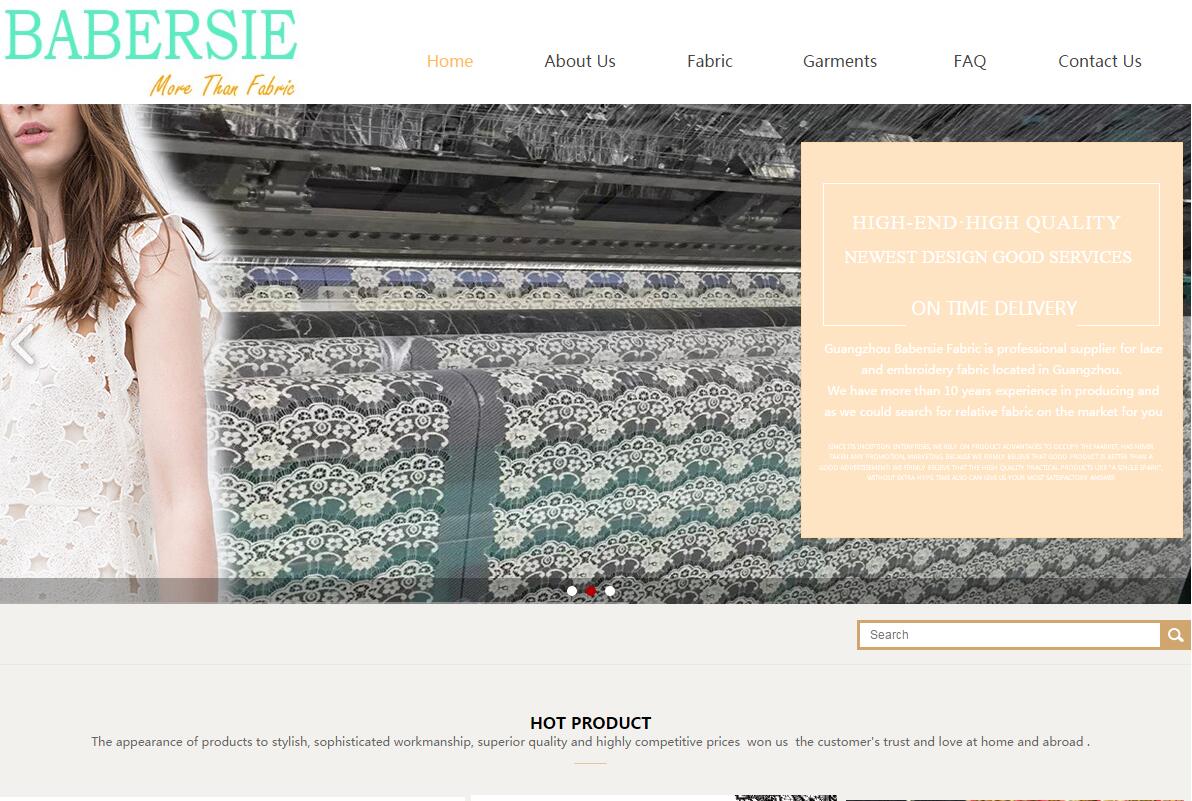 海洋網(wǎng)絡(luò)網(wǎng)站建設(shè)從2018年開始與Guangzhou Babersie Fabric Co. Ltd深度合作,幫助Guangzhou Babersie Fabric Co. Ltd設(shè)計網(wǎng)站及開發(fā)網(wǎng)站多次網(wǎng)站平臺,此項目為2018年Guangzhou Babersie Fabric Co. Ltd新版官方網(wǎng)站。