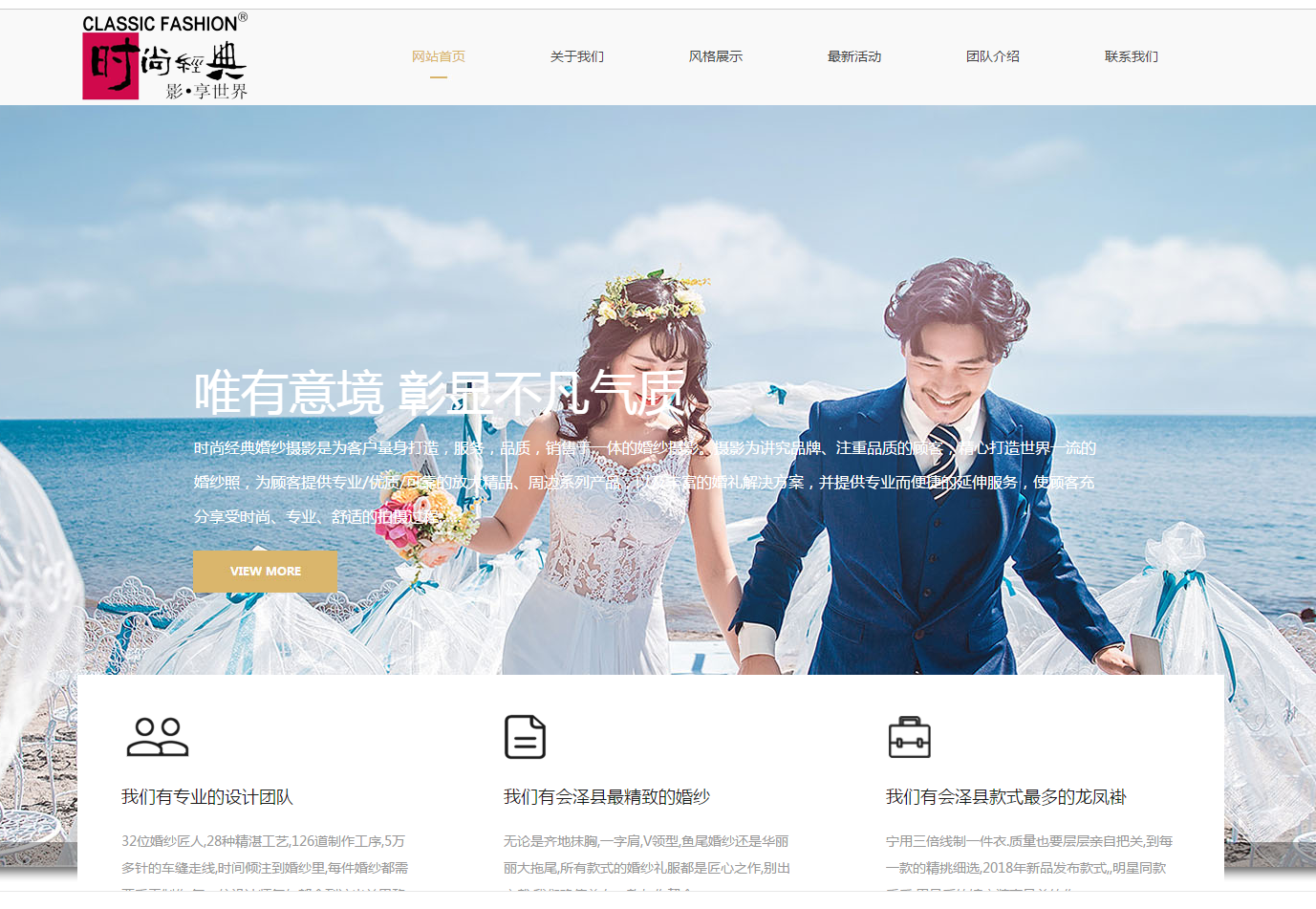 海洋網(wǎng)絡(luò)從2018年開始與時(shí)尚經(jīng)典婚紗攝影簽約網(wǎng)站建設(shè),幫助時(shí)尚經(jīng)典婚紗攝影., LTD 網(wǎng)站設(shè)計(jì)及開發(fā)網(wǎng)站多次網(wǎng)站平臺(tái),此項(xiàng)目為時(shí)尚經(jīng)典婚紗攝影新版官方網(wǎng)站。
