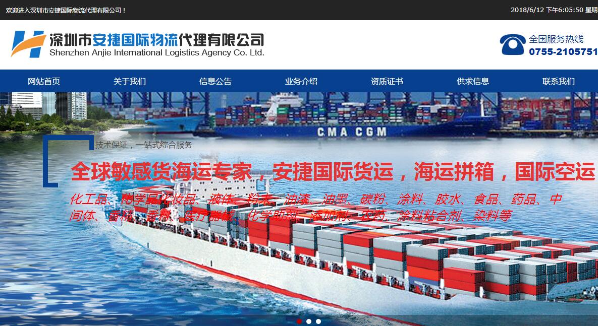 海洋網(wǎng)絡(luò)網(wǎng)站建設(shè)從2018年開始與深圳市安捷國際物流代理有限公司深度合作,幫助深圳市安捷國際物流代理有限公司設(shè)計網(wǎng)站及開發(fā)網(wǎng)站多次網(wǎng)站平臺,此項目為2018年深圳市安捷國際物流代理有限公司新版官方網(wǎng)站。