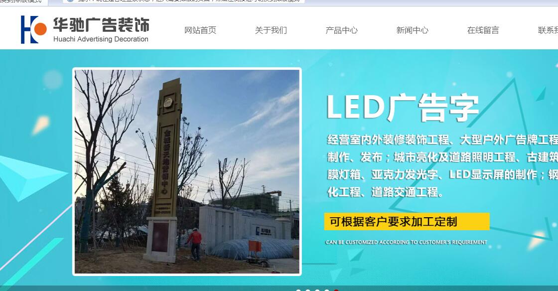 海洋網(wǎng)絡(luò)網(wǎng)站建設(shè)從2018年開始與甘肅華馳廣告裝飾工程有限公司深度合作,幫助甘肅華馳廣告裝飾工程有限公司設(shè)計(jì)網(wǎng)站及開發(fā)網(wǎng)站多次網(wǎng)站平臺(tái),此項(xiàng)目為2018年甘肅華馳廣告裝飾工程有限公司新版官方網(wǎng)站。